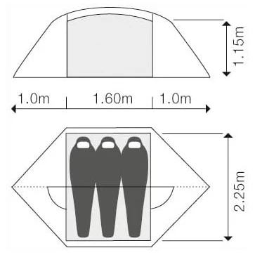 With a length of 100 cm each, a vestibule adjoins each side entrance. They not only provide you with the best protection against the elements, but also create a lot of storage space for backpacks, walking boots and panniers. Exped equips the 2.75 kg light tent with a durable outer tent made from 15D ripstop nylon, which offers very good rain and moisture protection with silicone and PU coating. For good ventilation and reliable protection from insects, Exped adds 20D No-See-Um mosquito netting to the Venus III UL inner tent.
