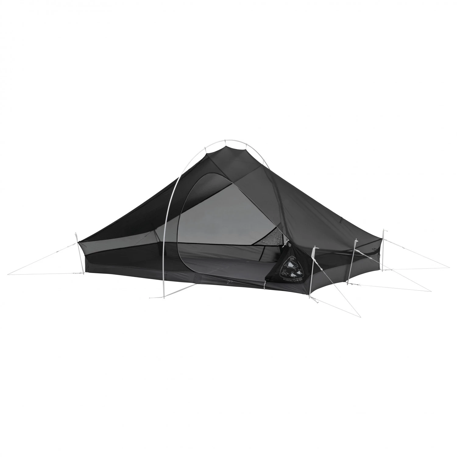 The compact and light Chaser 3XE three-person tent from Robens is perfect for ultra-light trekking tours and bikepacking. It features a central arch that marks the highest point at 105 cm. It slopes down from the centre on both sides and the area for sleeping has an asymmetrical shape. The Robens tunnel tent creates a cosy space for sleeping while trekking and backpacking.